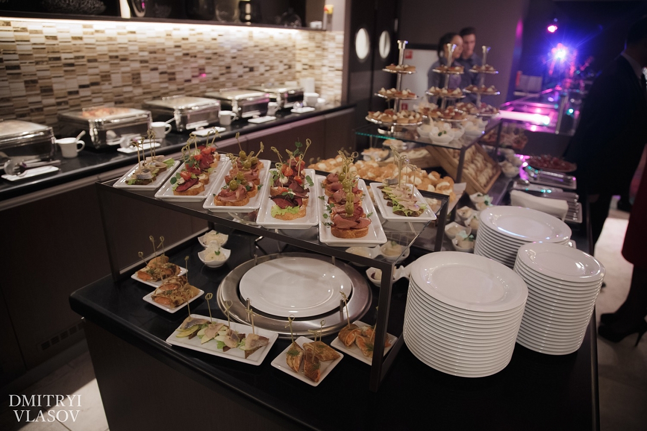 - Подарки для молодожёнов: номер категории «Стандарт» с завтраком на двоих (при банкете от 150 000 руб.). Возможен ранний заезд и поздний выезд (при наличии в отеле свободных номеров);